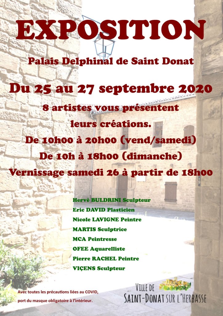 8 artistes peintres et sculpteurs, et leur centaine d’oeuves récentes, nous offrent un moment superbe de détente et de convivialité dans le lieu magique du Palais Delphinal de St Donat (Drôme des Collines).