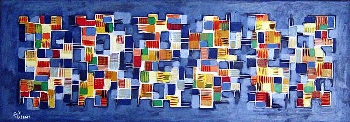 Depuis ses premières expositions au début des années 90 à Tunis et à Carthage, Khaled Lasram, né le 1er août 1949 à Tunis, Diplômé de l’Institut technologique d’art d’architecture et d’urbanisme de Tunis (1975) et Docteur en Histoire de l’art (Sorbonne, Paris I, 1981), n’a cessé d’oeuvrer à intégrer sa peinture nationale dans une Histoire de l’Art universelle, d’harmoniser une peinture typiquement tunisienne avec les innovations mondiales des plus grands maîtres.