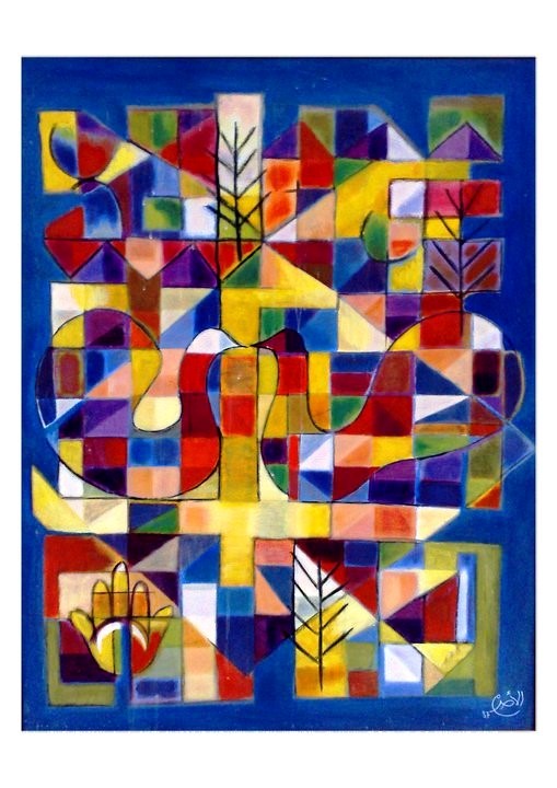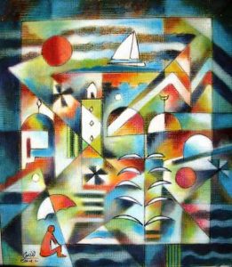 Et en même temps, certains tableaux peuvent rappeler l’orientalisme français (duquel l’école de Tunis s’émancipait), l’art abstrait de Klee, Kandisnky ou Picasso, les géométrisations du Cubisme et du Futurisme, le foisonnement végétal d’Henri Rousseau (dit le Douanier-Rousseau), les audaces du fauvisme, ou encore la poésie surréaliste et ses illusions d’optiques de Salvador Dali, autant de références extérieurs qui lui inspirent un renouvellement créatif dans son propre univers.
