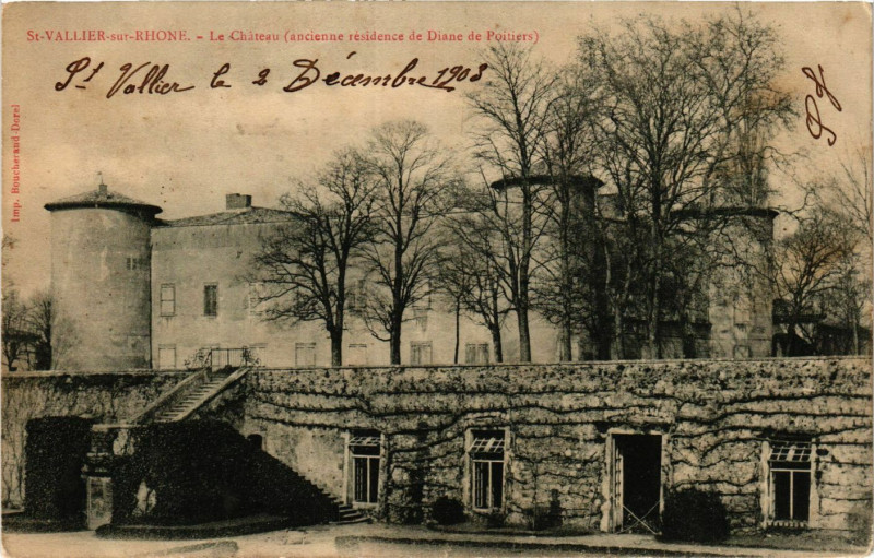 Village historique du Dauphiné, Saint-Vallier-sur-Rhône, situé en plein coeur de l’axe rhodanien, au nord de la Drôme, à mi-chemin entre Lyon et Montélimar, est surtout connue pour être la ville natale de la Comtesse Diane de Poitiers (1500 – 1566), dont le château est l’un des éléments les plus remarquable de son Patrimoine.
