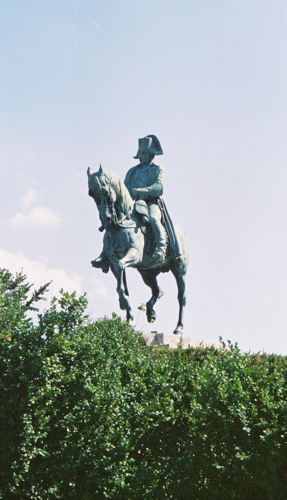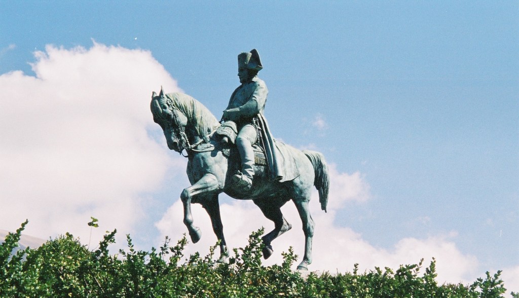 Une statue équestre de Napoléon (1768-1821) trône dans un alpage de Laffrey, en terre dauphinoise, à 20 km au sud de Grenoble. Elle évoque la confrontation historique entre Napoléon et les troupes royalistes commandées par Lessart, lors de son retour d’exil en 1815. Ce lieu patrimonial, appelé Prairie de la rencontre, dévoile également un beau panorama sur les montagnes de la Matheysine et sur le lac de Laffrey.