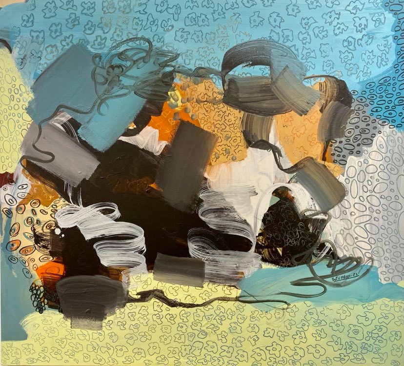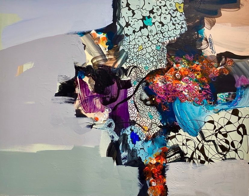 Du fou, du confus, de l’obscur, du désordonné, du complexe, telle est la matière première utilisée dans les récents et inédits tableaux de l’exposition « Diaphanous » de l’artiste-peintre tunisienne Leila Selmaoui. Avec toutefois cette fois-ci, pour nous surprendre encore, une thématique et approche esthétique bien différente par rapport à ses dernières œuvres (comme pour ses expositions Anonymous en 2015 ou encore Co-confinement 2020), Leila Selmaoui restitue une fois de plus les tourbillons créatifs et singuliers de son esprit. Dans un maëlstrom mêlant ses observations et introspections, noyant la figuration dans l’abstraction, surclassant l’académisme par l’expérimentation, dans un tournis de couleurs, teintes et tons typiques de sa palette, dans une abondance de signes et motifs nouveaux sur ses tableaux, Leïla Selmaoui, artiste conceptuelle expérimentée (1ère expo personnelle en 2005), renouvelle son style graphique en plongeant ses sujets complètement dans l’irréalité, ne laissant désormais plus ni silhouettes ni formes connues auxquelles se raccrocher et se rassurer, juste des mélanges hétérogènes brouillant les codes habituels. Pour arriver à cette manière à la fois plus moderne et plus abscons d’expression, Leila contemple autour d’elle des êtres, des humeurs, des paysages, des situations, examine en elle des états d’âme, des tourments, des coups de cœur, des émotions. Elle malaxe alors tout cela avec des fragments de sa mémoire, des éclats de son présent, les scintillements de ses espoirs. Enfin, à la manière d’une couturière confectionnant ses patchworks, par couches successives et par contrastes, du trait fin du dessin aux larges aplats, elle peint. Ses sujets, ses ambiances, ses brisures, ses désirs, son imaginaire, ses idées, tout y est décomposé, déconstruit, disproportionné, et superposé, jusqu’à donner des panneaux muraux décoratifs très originaux, véritables fenêtres pour des réflexions nouvelles. Aussi, à l’instar des nuages, des simulacres ou des masques, le temps qui passe aidant au dévoilement, une autre vision finit par s’imposer à chacun et faire sens. Fiat Lux, quand la lumière advient, chaque tableau trouve son unité, sa place, son identité.