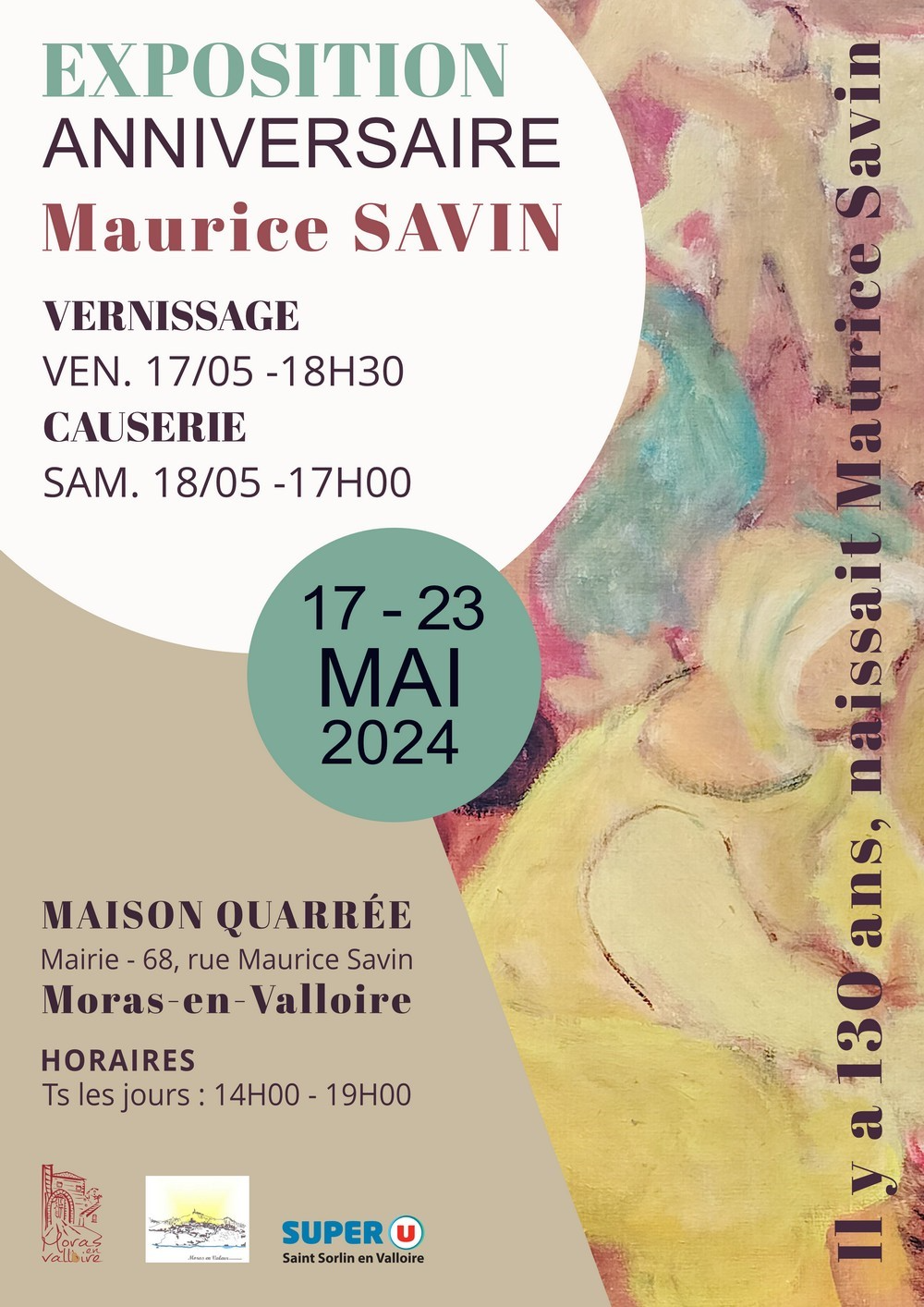 À l’occasion des 130 ans de la naissance de Maurice Savin, l’association « Moras en Valeur » a le plaisir de vous inviter à découvrir l’exposition « Maurice Savin » du 17 au 23 mai 2024 à la Maison Quarrée, mairie de Moras-en-Valloire.