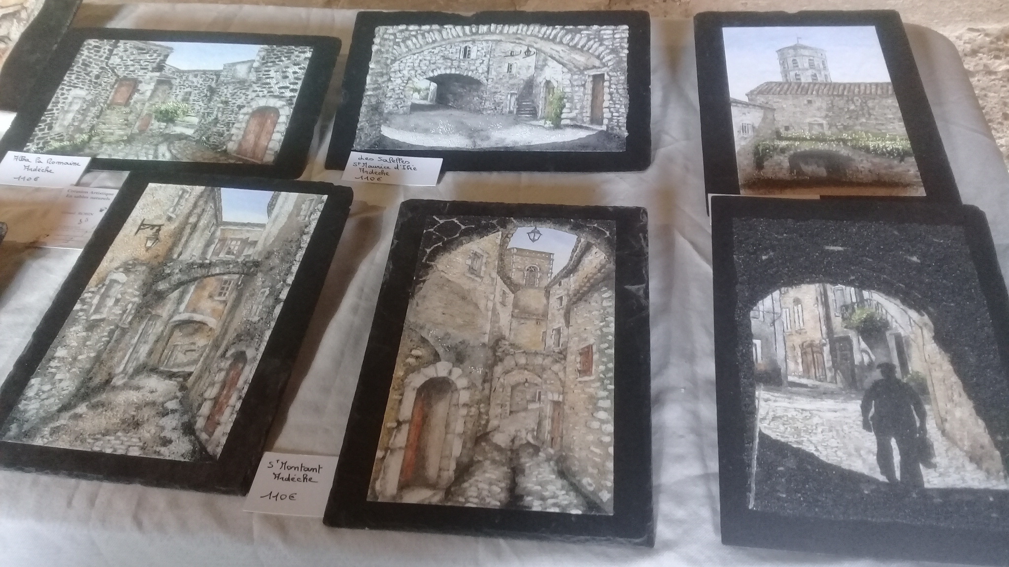 Quel que soit l’univers choisi, que ce soit l’art pariétal de la grotte Chauvet (ce santuaire préhistorique sud-ardéchois découvert en 1994 et où ses œuvres sont en exposition permanente), les animaux sauvages de la savane africaine (éléphants, lions, zèbres, girafes, …) ou les vieux villages ardéchois, chaque tableau en sable de Gérard Robin est une étonante œuvre d’art. Caractérisés par leurs nuances de couleurs et leurs textures variées, ces tableaux transportent les visiteurs dans un voyage imaginaire, où chaque grain de sable raconte une histoire unique.