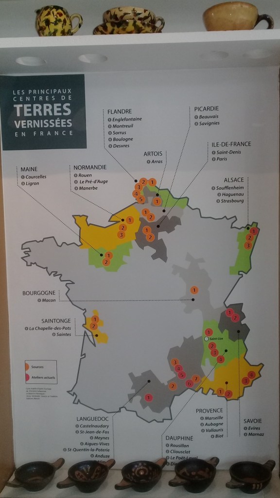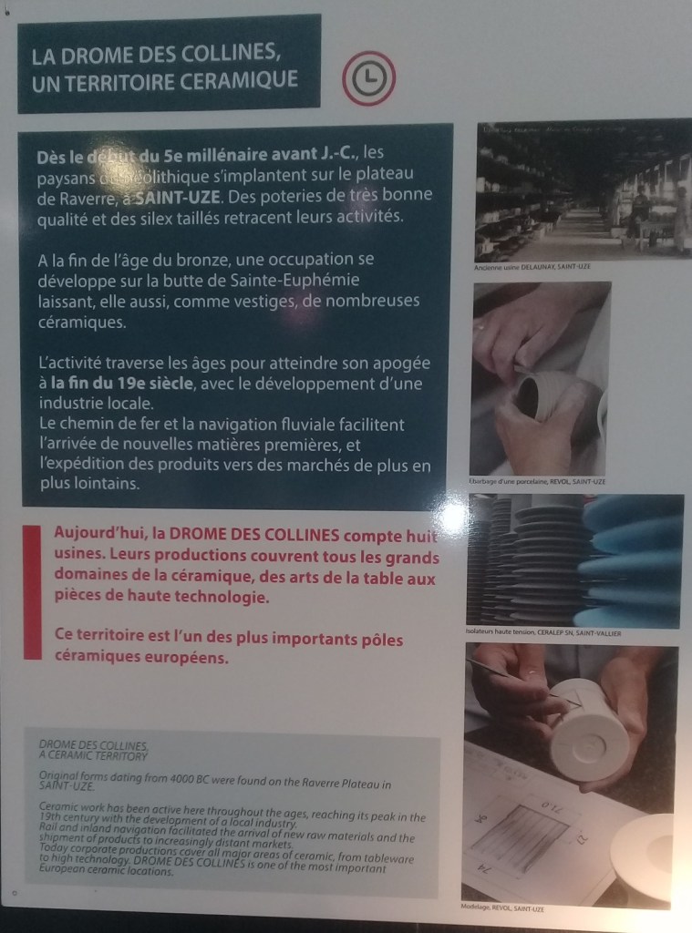 Évidemment, la Maison de la Céramique témoigne du passé mais aussi du présent industriel de Saint-Uze (fief de Revol depuis >250 ans) et valorise la riche histoire de la céramique en Drôme des Collines. Parmi ce patrimoine de renom, les incontournables « Bleus de Saint-Uze » (type de grès qui a été produit de la fin du 19e à la première moitié du 20e siècle, par une douzaine d’entreprises du nord de la Drôme, notamment par Revol, Delaunay et Michon à Saint-Uze) sont bien présents. De plus, une salle étonnante est consacrée à l’ensemble de céramiques antiques et de répliques réalisées par Jean MONTAGU, maître artisan potier à Saint-Vallier, Docteur en art et archéologie, et auteur du livre LES SECRETS DE FABRICATION DES CERAMIQUES ANTIQUES.