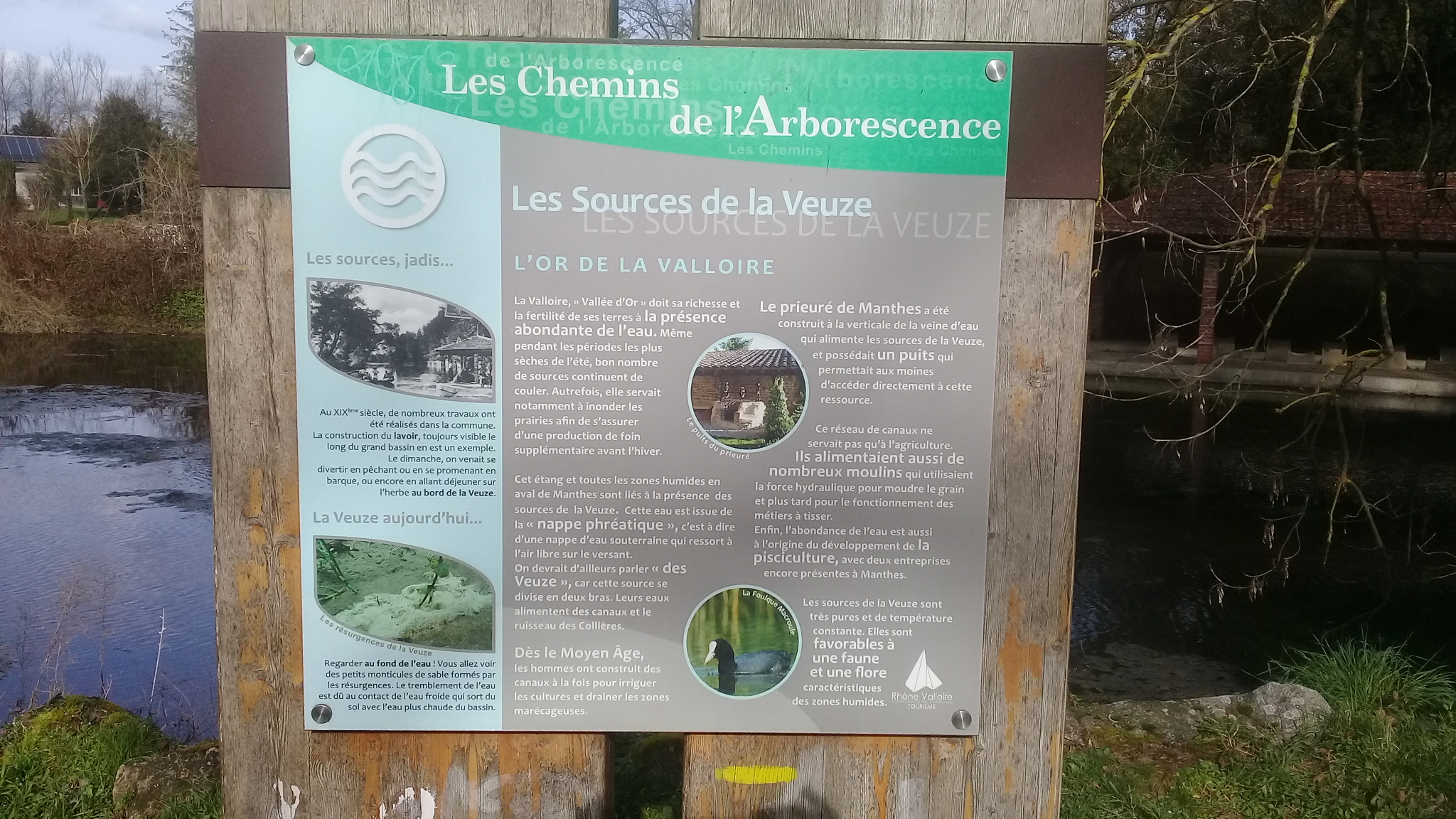Manthes, petit village tranquille de la Valloire, a su conserver, en plus de son prieuré, un magnifique et exceptionnel lavoir à l’ancienne. Construit en 1885 et possédant 17 battoirs au ras du sol, il est établi au milieu d’un lac formé par les sources de la rivière de la Veuze. A cette époque, les épidémies, et notamment celle du choléra, étaient encore redoutées. Les règles d’hygiène étaient diffusées par les journaux et l’école. Les lavoirs facilitaient la propreté, ils étaient, aussi, un lieu de rencontre où s’échangeaient les nouvelles et quelques médisances.