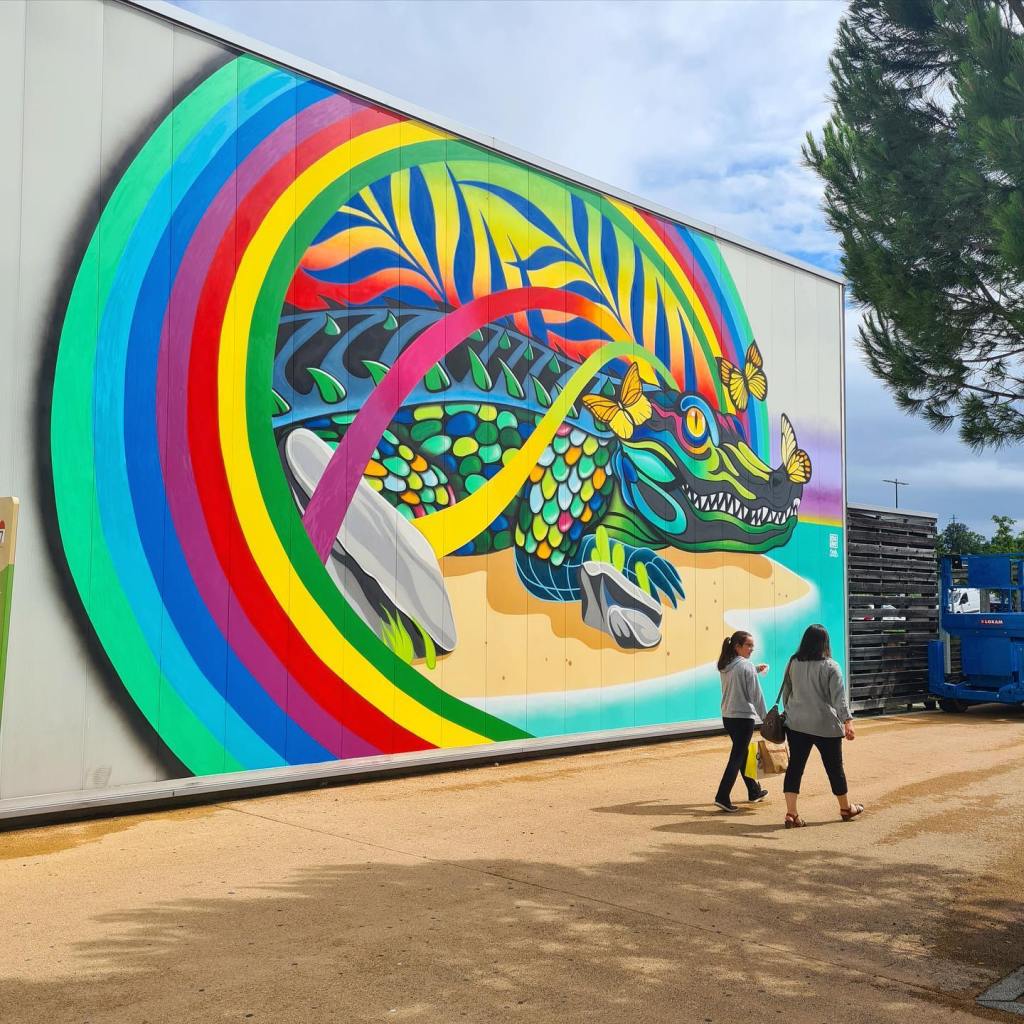 Le plus art contemporain. Réalisé en 2021 par l’artiste plasticien rémois CEZ ART, cette fresque murale (13m x 6m) de type street art représente un crocodile très exotique et coloré sur l’une des façades (Entrée Sud) des enseignes du centre commercial.