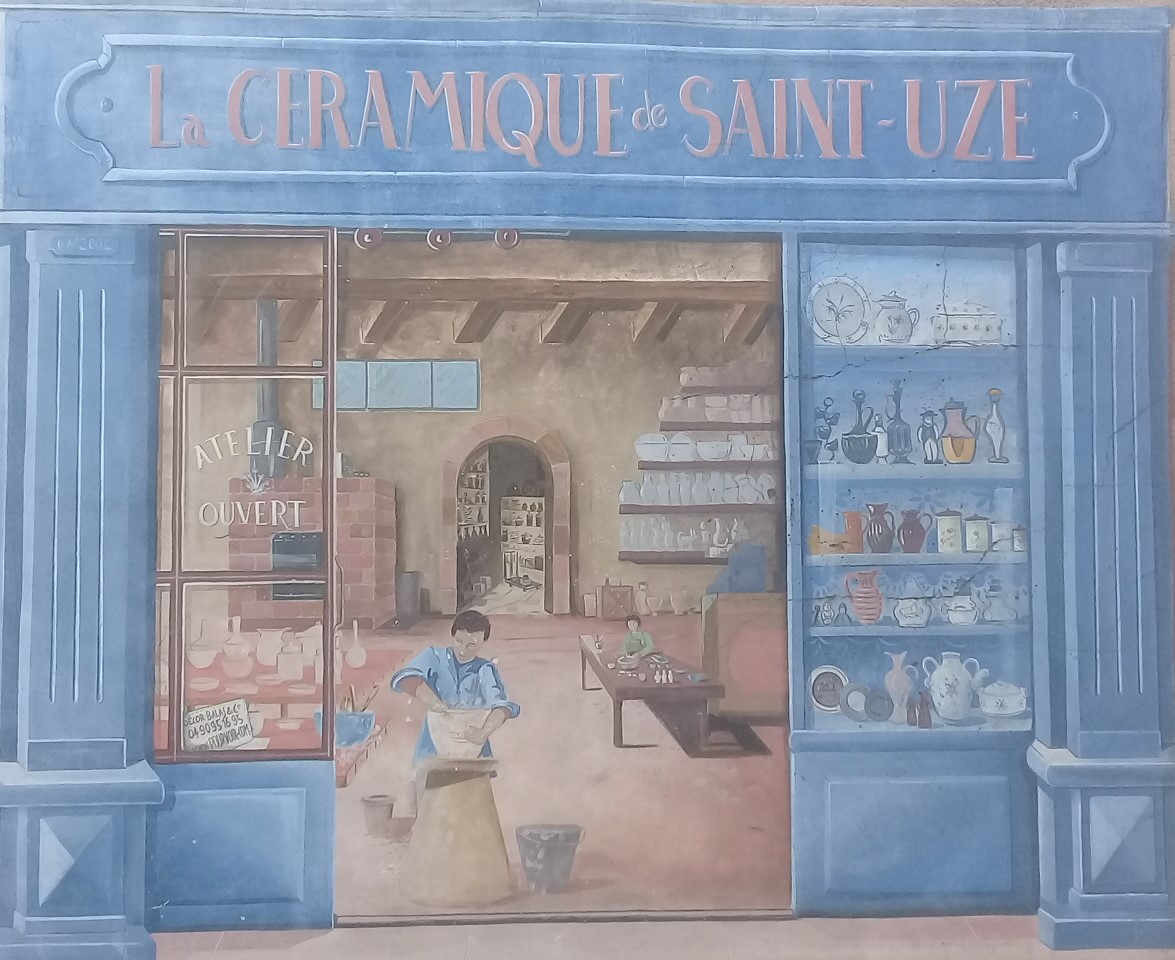 Le plus patrimonial des murs-peints locaux reprend l’activité emblématique du village : la Céramique. Face à l’église en descendant la rue du Battoir.