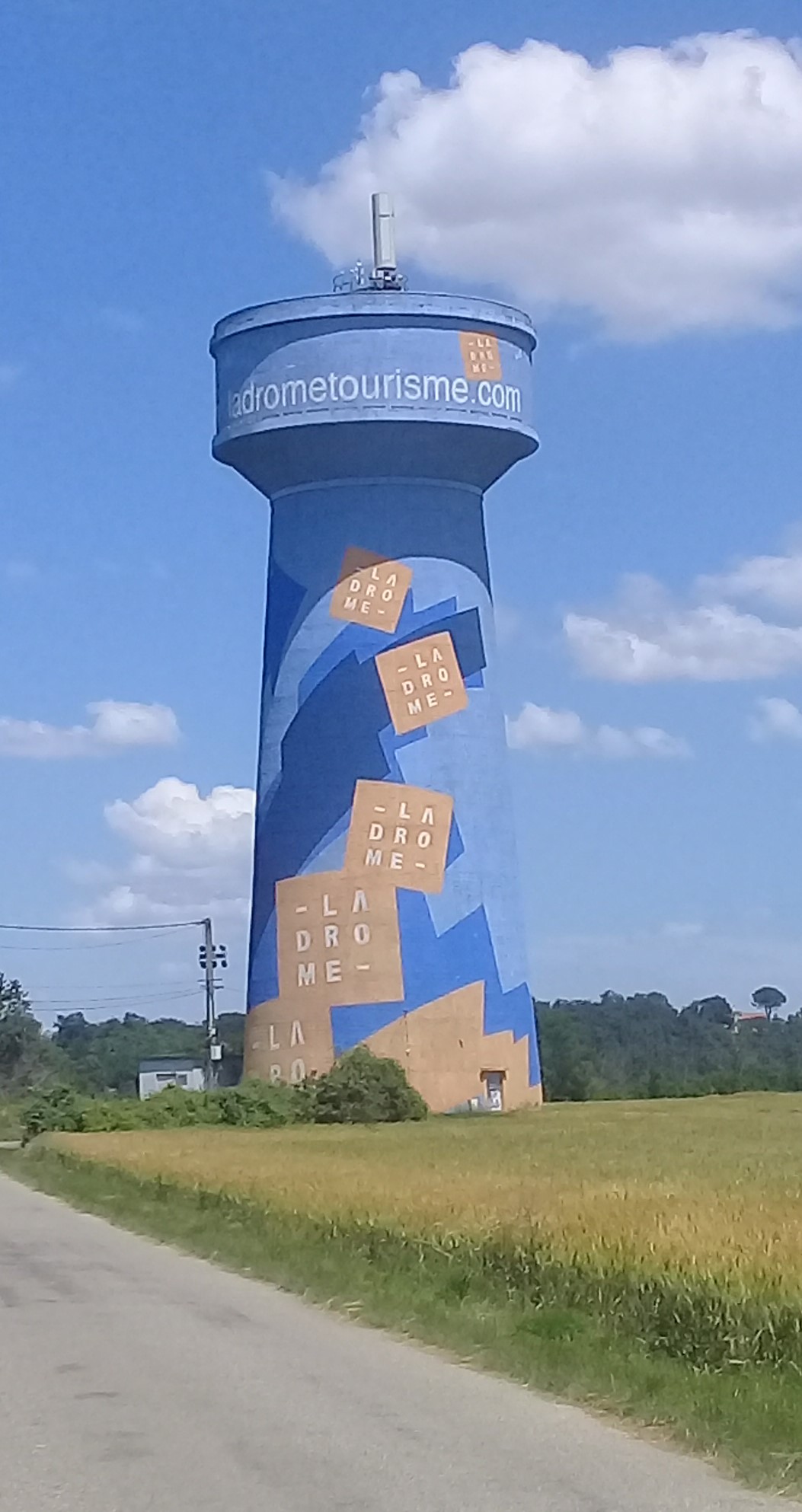 Le mur-peint le plus spectaculaire de la région avec ses 1425 m² de surface peinte aux couleurs du Département de la Drôme. Symbole de l’entrée dans la Drôme (synonyme de début du Sud pour beaucoup de voyageurs, même si c’est plutôt à partir de Montélimar qu’il faut situer ce débud du Sud) pour des millions d’automobilistes, le château d’eau de Saint-Rambert, en bordure de l’autoroute du Soleil (A7), est idéalement placé pour incarner “le” visuel de promotion touristique pour la Drôme.
