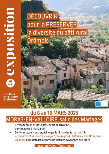 Si vous êtes passionné par l’architecture ancienne, la préservation du patrimoine et les secrets du bâti rural, ne manquez pas l’événement incontournable organisé par Moras en Valeur et Maisons Paysannes de la Drôme. Du samedi 8 mars à partir de 18h jusqu’au dimanche 16 mars 2025 inclus à Moras-en-Valloire, venez explorer la richesse et la diversité du bâti rural drômois !