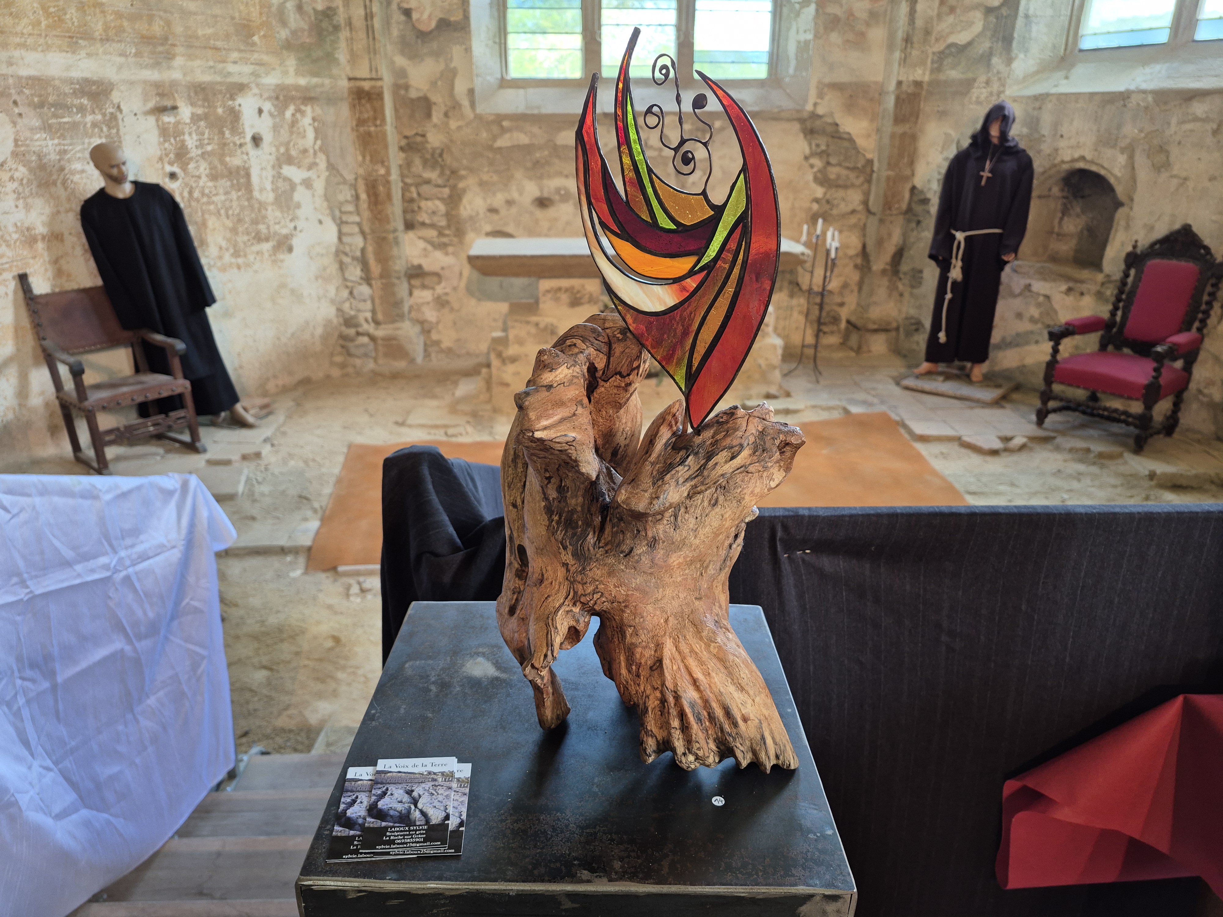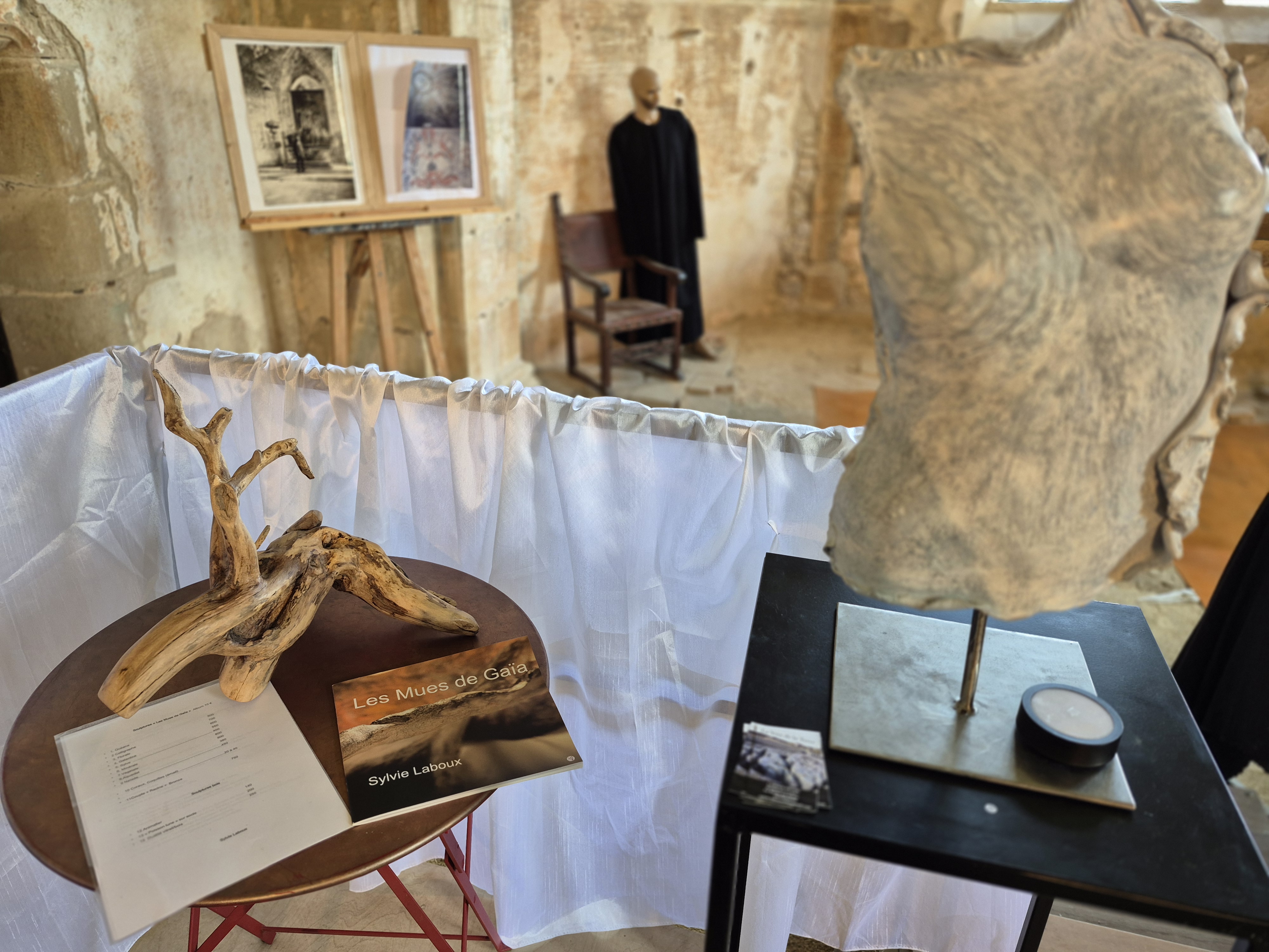 Ces piĂšces sâintĂšgrent parfaitement au dĂ©cor austĂšre du prieurĂ©, oĂč la pierre ancienne rĂ©pond Ă la matiĂšre cuite, oĂč la lumiĂšre naturelle joue avec les reflets des patines et des Ă©maux.