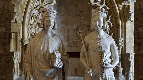 Sur le parvis de l’église, deux bustes de bronze attirent le regard. Créés par le sculpteur Jean-Paul Ravit et financés par le mécénat de Jacques Brun, ils représentent Charles et Jeanne tels qu’ils étaient en avril 1350 : deux enfants de douze ans au regard grave, figés dans la dignité de leur charge.