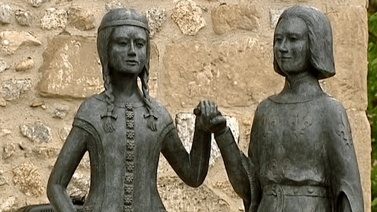 Il fit appel au sculpteur Jean-Paul Ravit pour créer deux bustes en bronze représentant les jeunes époux. Ces œuvres, d’une grande finesse artistique, furent inaugurées le 21 septembre 2014 sur le parvis de l’église Notre-Dame. Elles permettent aux habitants et aux visiteurs de visualiser les traits de ces enfants de douze ans dont l’union changea le destin du Dauphiné.