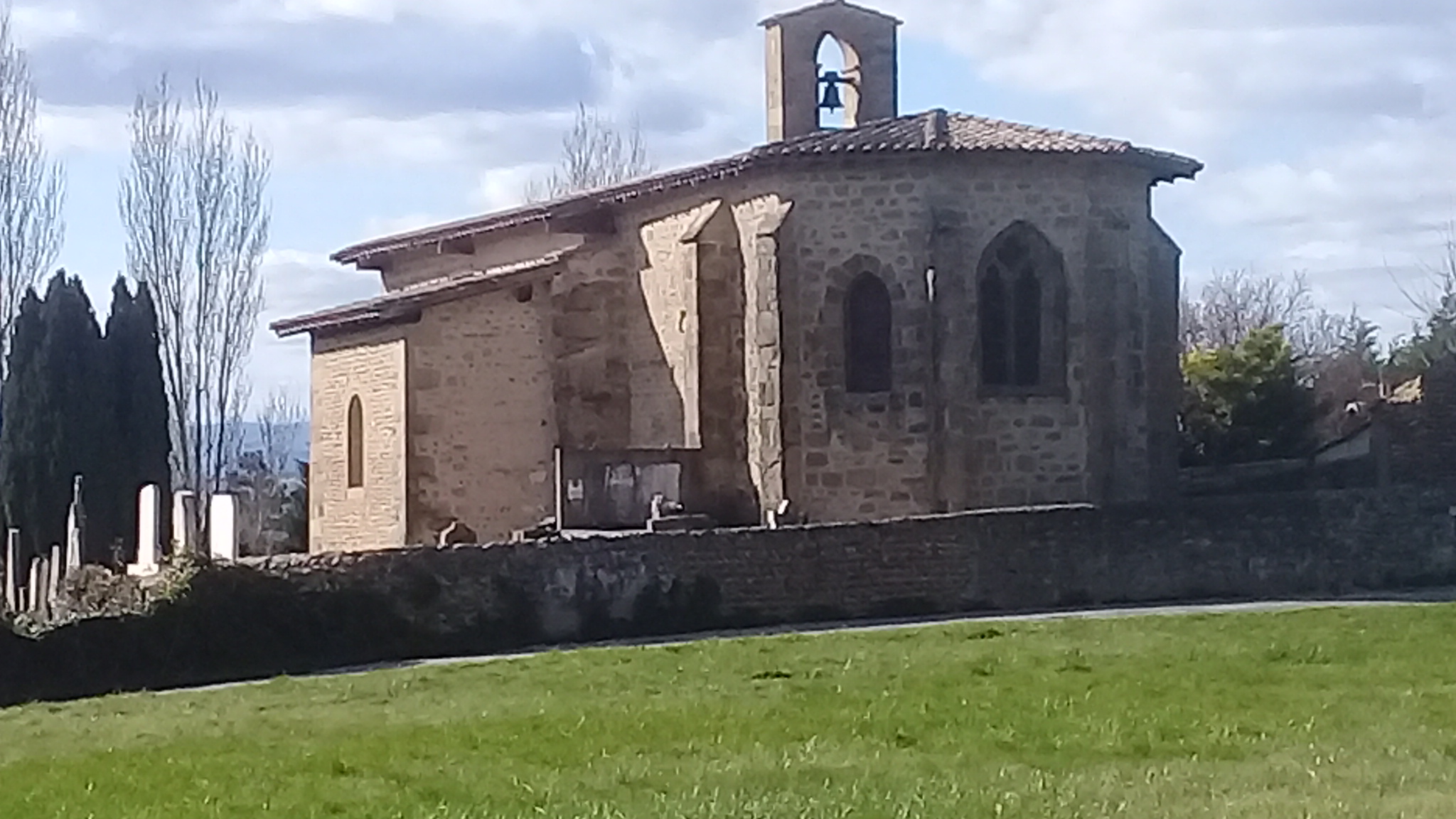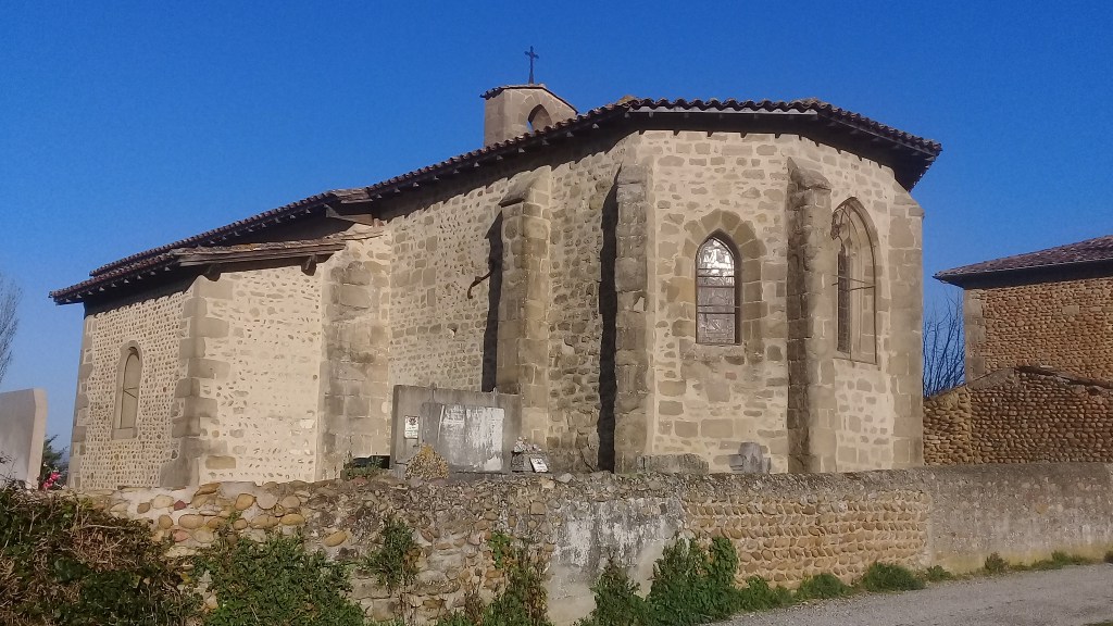XIXe siècle : Restauration de la voûte de la nef effondrée et construction de la sacristie au sud du chœur (en galets du Rhône).
