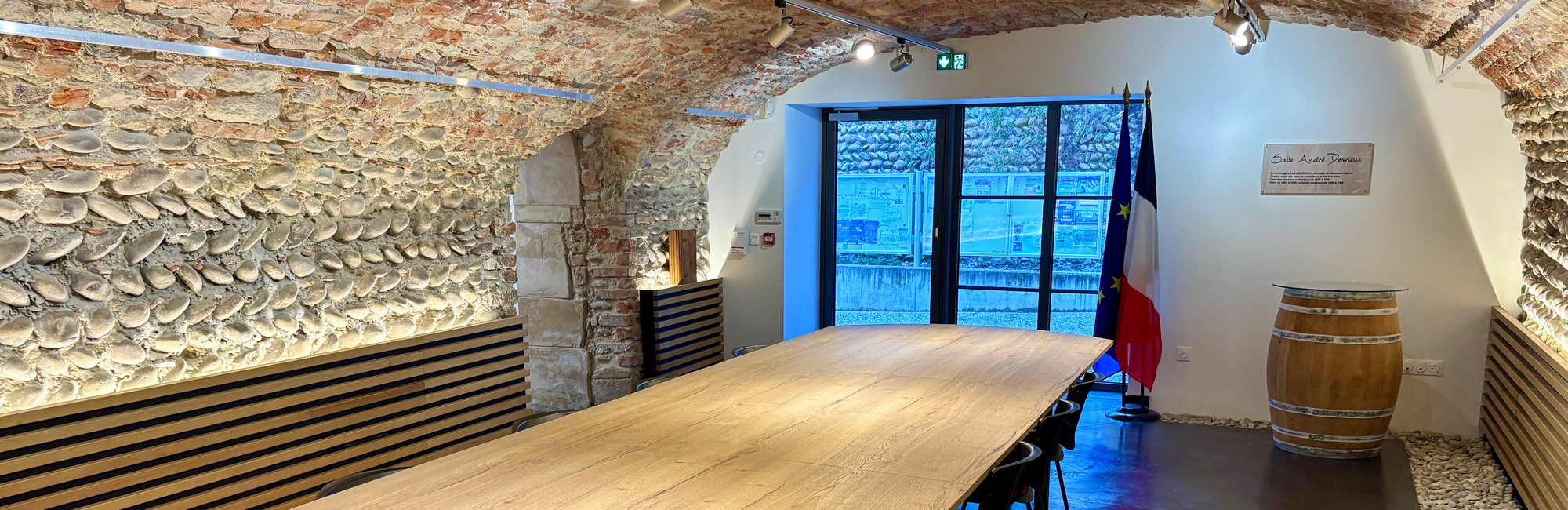 En vous baladant dans le centre ancien, vous pouvez notamment admirer un arbre de la Liberté planté en 1848, la belle église avec son clocher du XI^e siècle, les vestiges des remparts avec deux portes du XV^e siècle, la maison du gouverneur de la fin du XVI^e siècle, ou encore la Maison Quarrée — aujourd’hui siège de la mairie. Un village où chaque pierre a une mémoire, et où les murs de la salle André Desrieux ont depuis longtemps pris l’habitude d’accueillir la création.