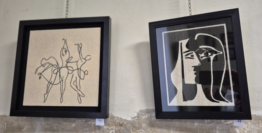 La collection Pop Culture surprend davantage. Voir un portrait de figure iconique comme Chet Baker exécuté en sable naturel produit une tension visuelle décisive : le médium le plus ancestral appliqué aux sujets les plus contemporains. C’est là, dans cette dissonance maîtrisée, que se révèle un artiste libre — celui qui n’oppose pas tradition et modernité mais les fait cohabiter.