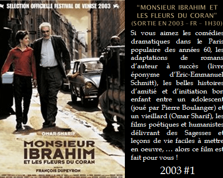 CINEMA 2003 : “MONSIEUR IBRAHIM ET LES FLEURS DU CORAN” (Sortie en 2003 – Fr – 1h30)