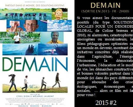 CINEMA 2015 : “DEMAIN” (Sortie en 2015 – Fr – 2h00)